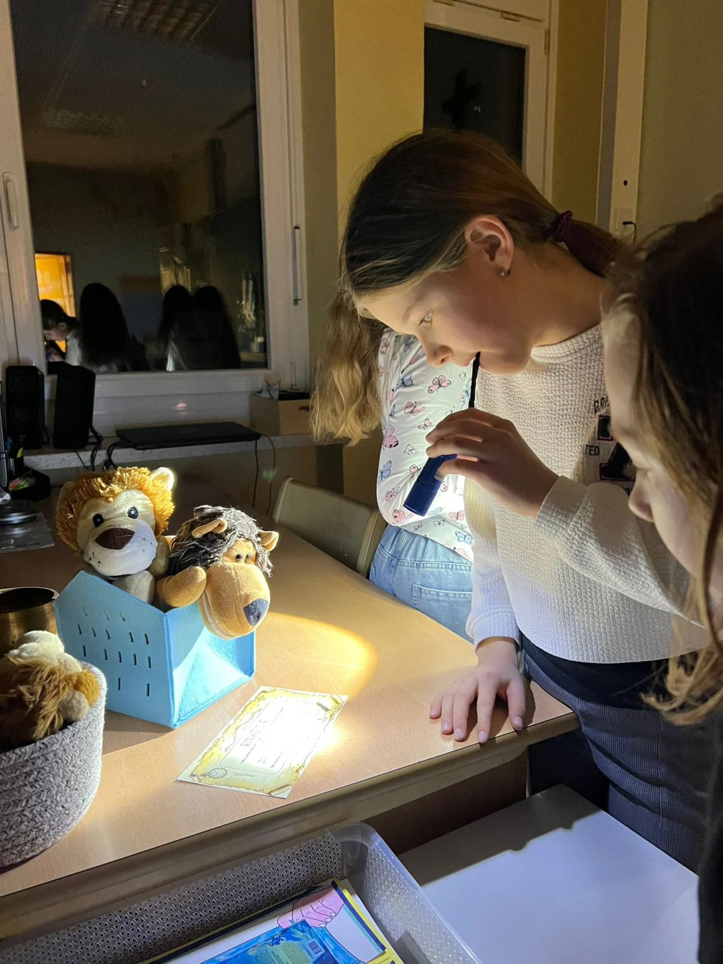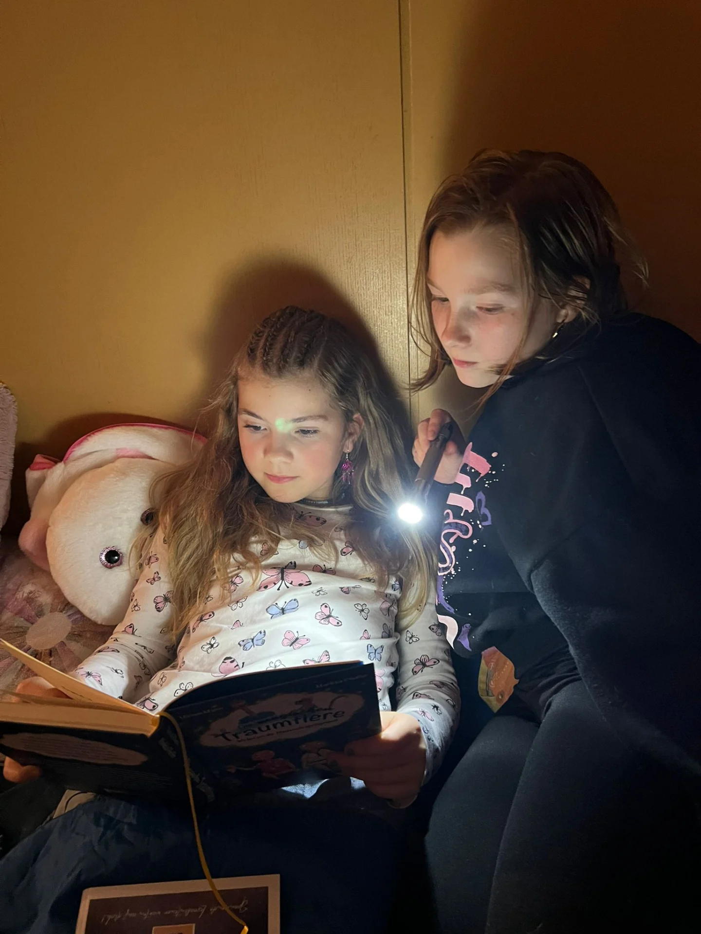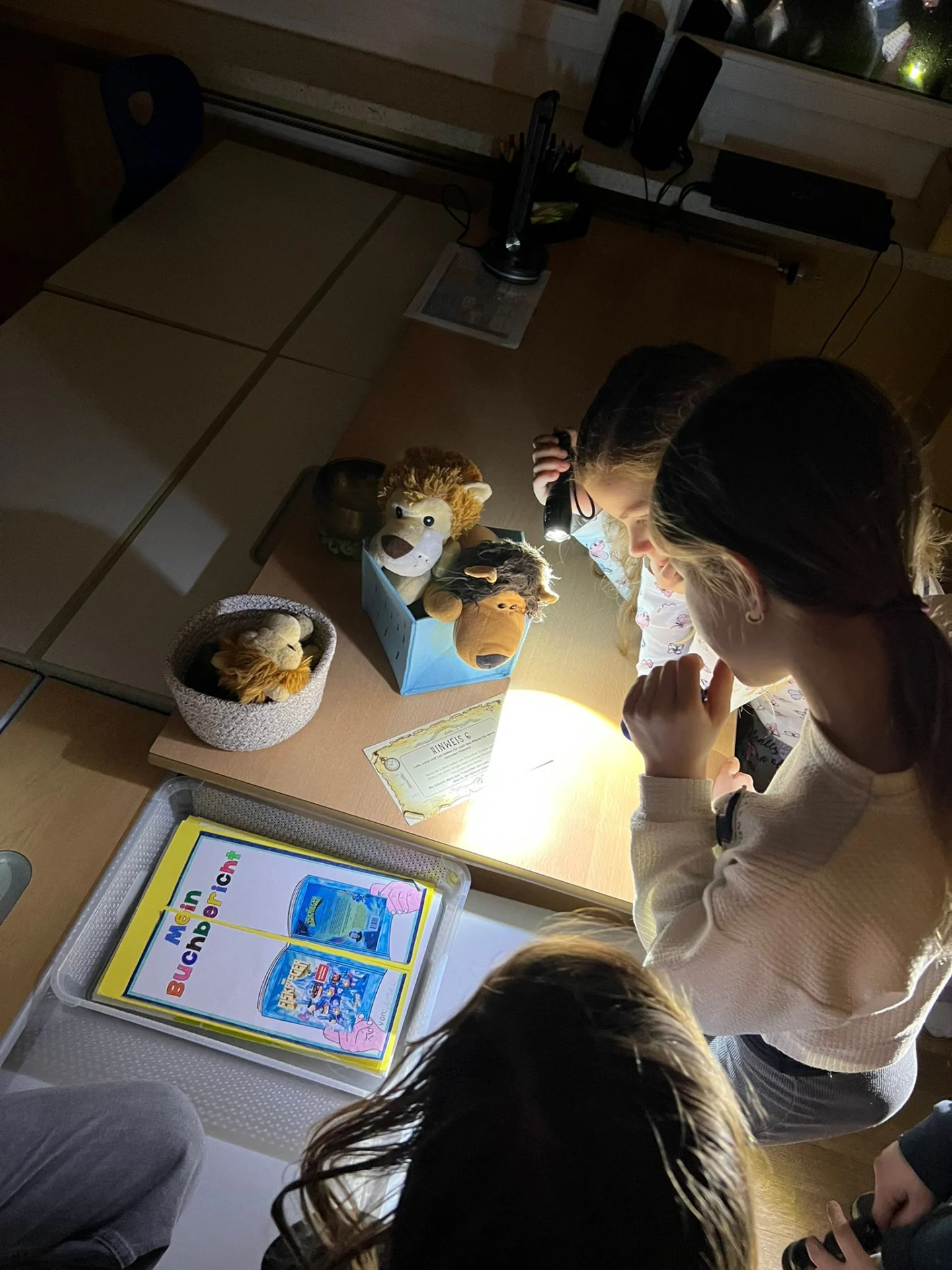 Dort wurde das erste Kapitel aus dem Buch „Die Geschwister Flederzisch und der Nachtkristall“ vorgelesen. Dabei tauchten wir sofort in die spannende Geschichte ein und hielten sogar Ausschau nach Fledermäusen!🦇🔍