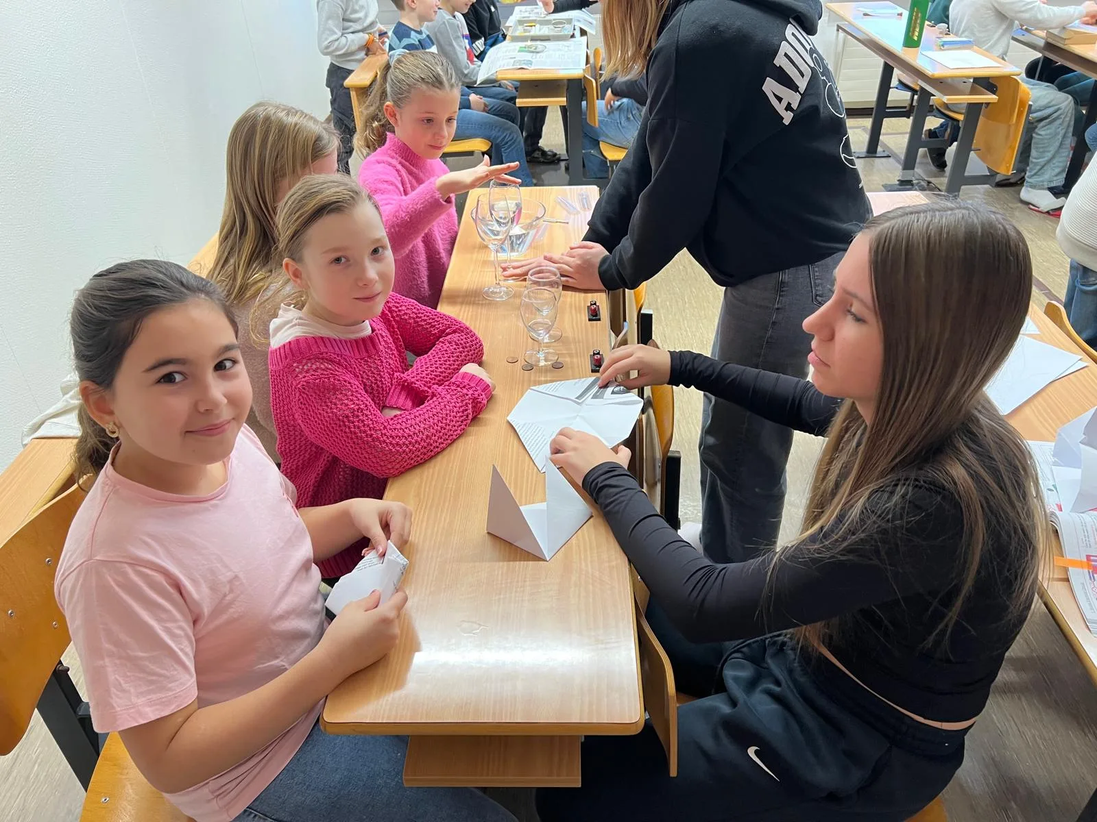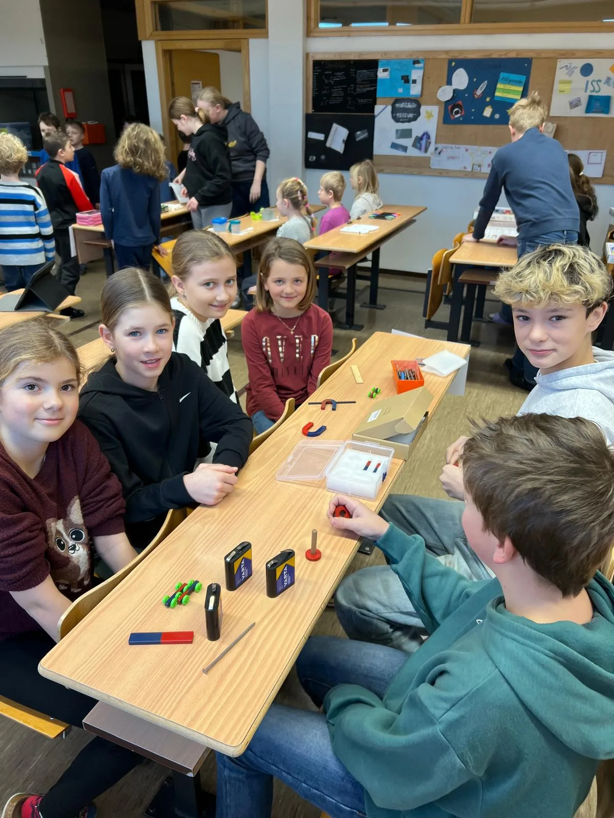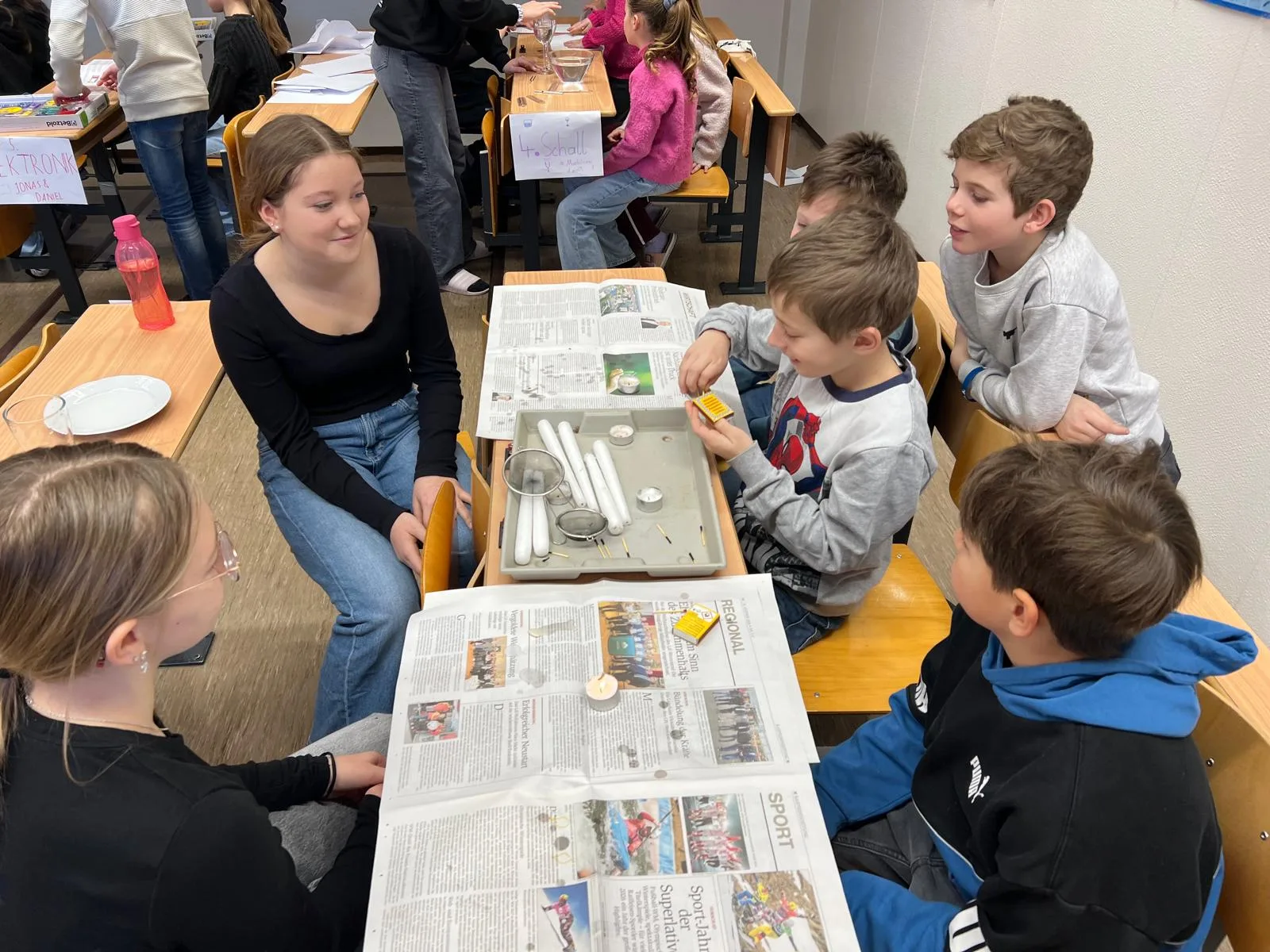 Besonders beeindruckend waren die Stationen aus den Bereichen Physik und Chemie. Gemeinsam mit den Schülerinnen und Schülern der Mittelschule wurden verschiedene Experimente durchgeführt, bei denen neugierig geforscht, ausprobiert und gestaunt werden durfte.