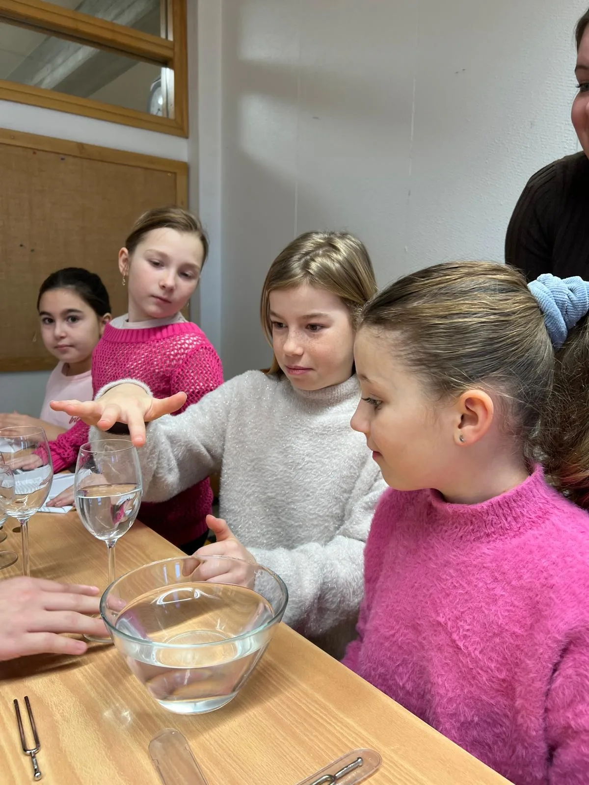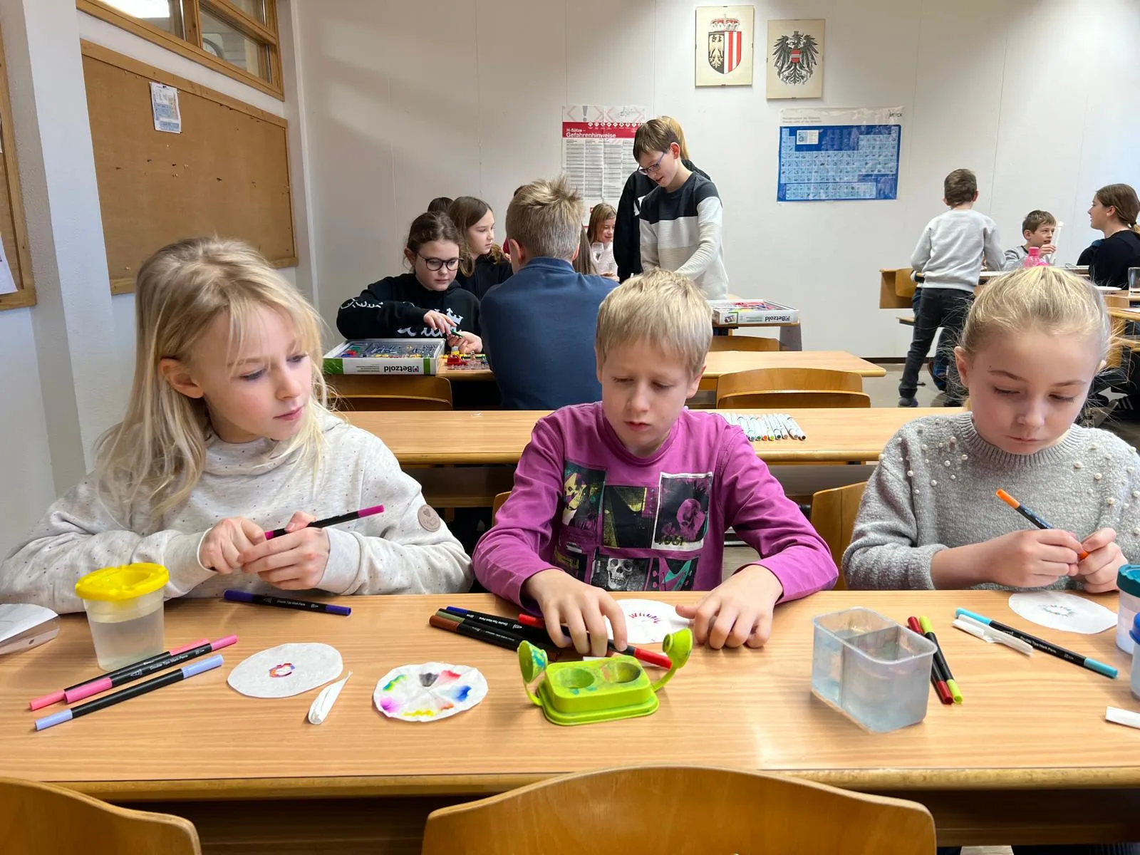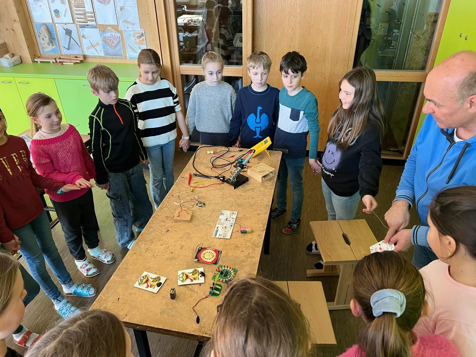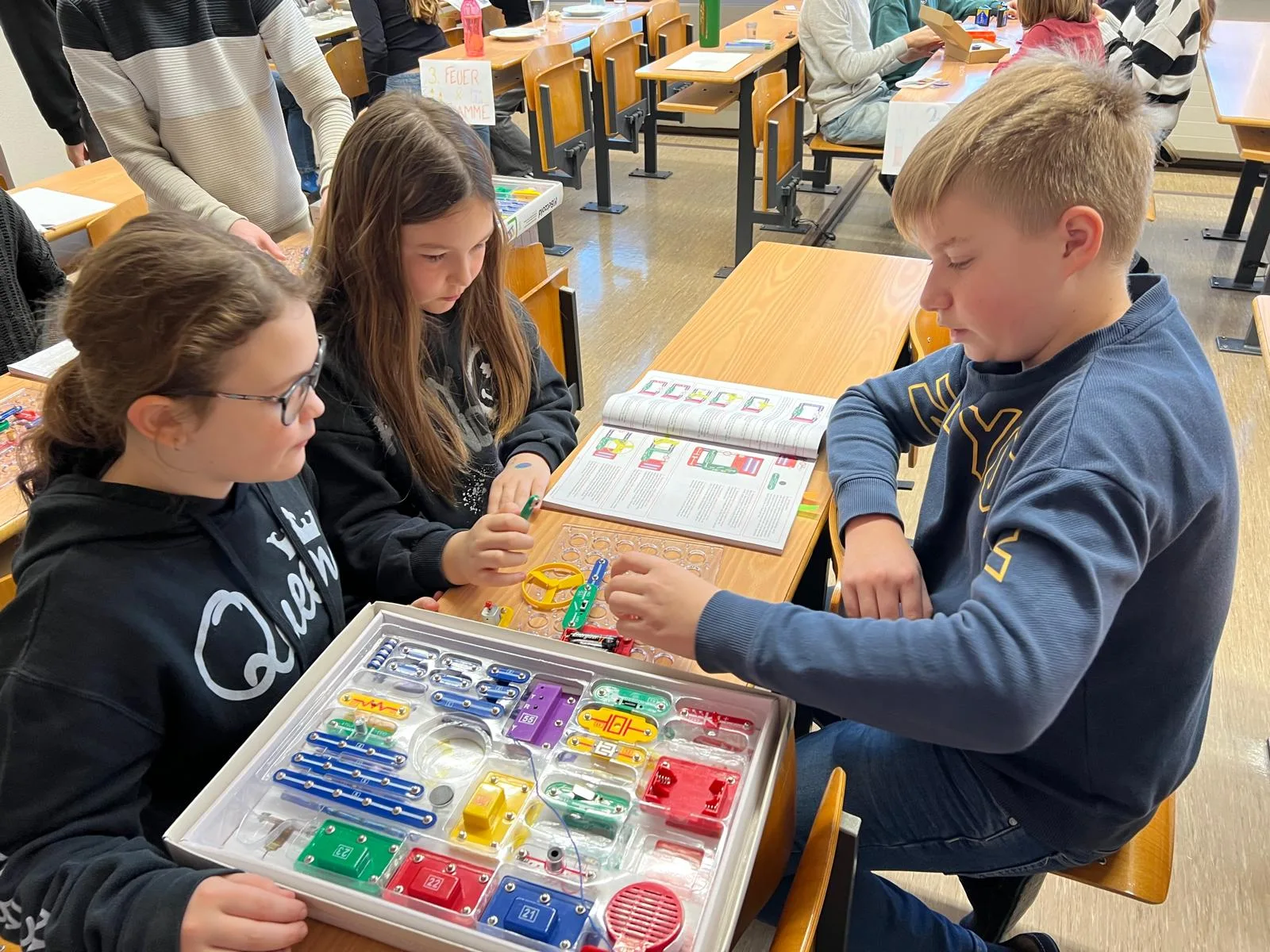 Besonders beeindruckend waren die Stationen aus den Bereichen Physik und Chemie. Gemeinsam mit den Schülerinnen und Schülern der Mittelschule wurden verschiedene Experimente durchgeführt, bei denen neugierig geforscht, ausprobiert und gestaunt werden durfte.