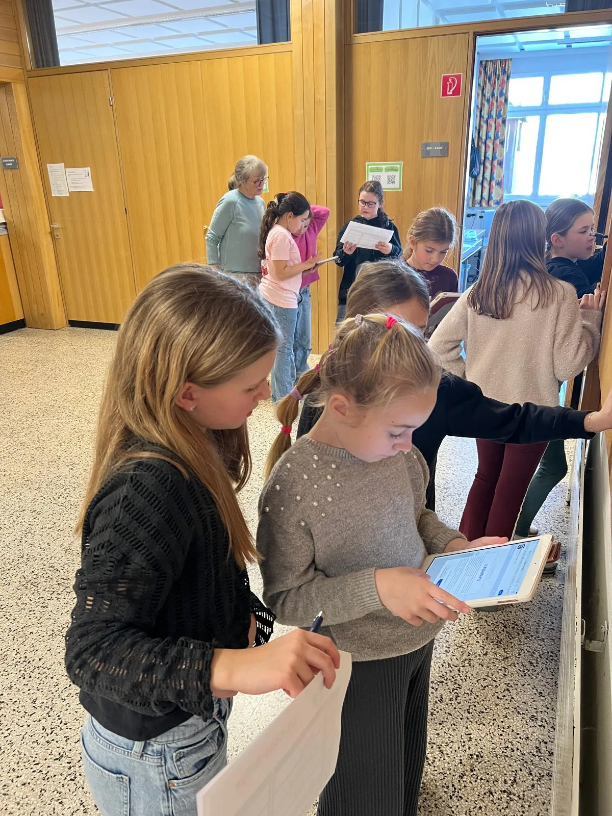 Im Anschluss daran stand Turnunterricht auf dem Programm, bei dem Bewegung und Spaß nicht zu kurz kamen. Danach lernten die Kinder die Räumlichkeiten und Klassen der Mittelschule bei einer Führung durch das Schulhaus kennen. Ein spannendes Rätsel mit dem Tablet sorgte zusätzlich für Motivation und Entdeckungsfreude.