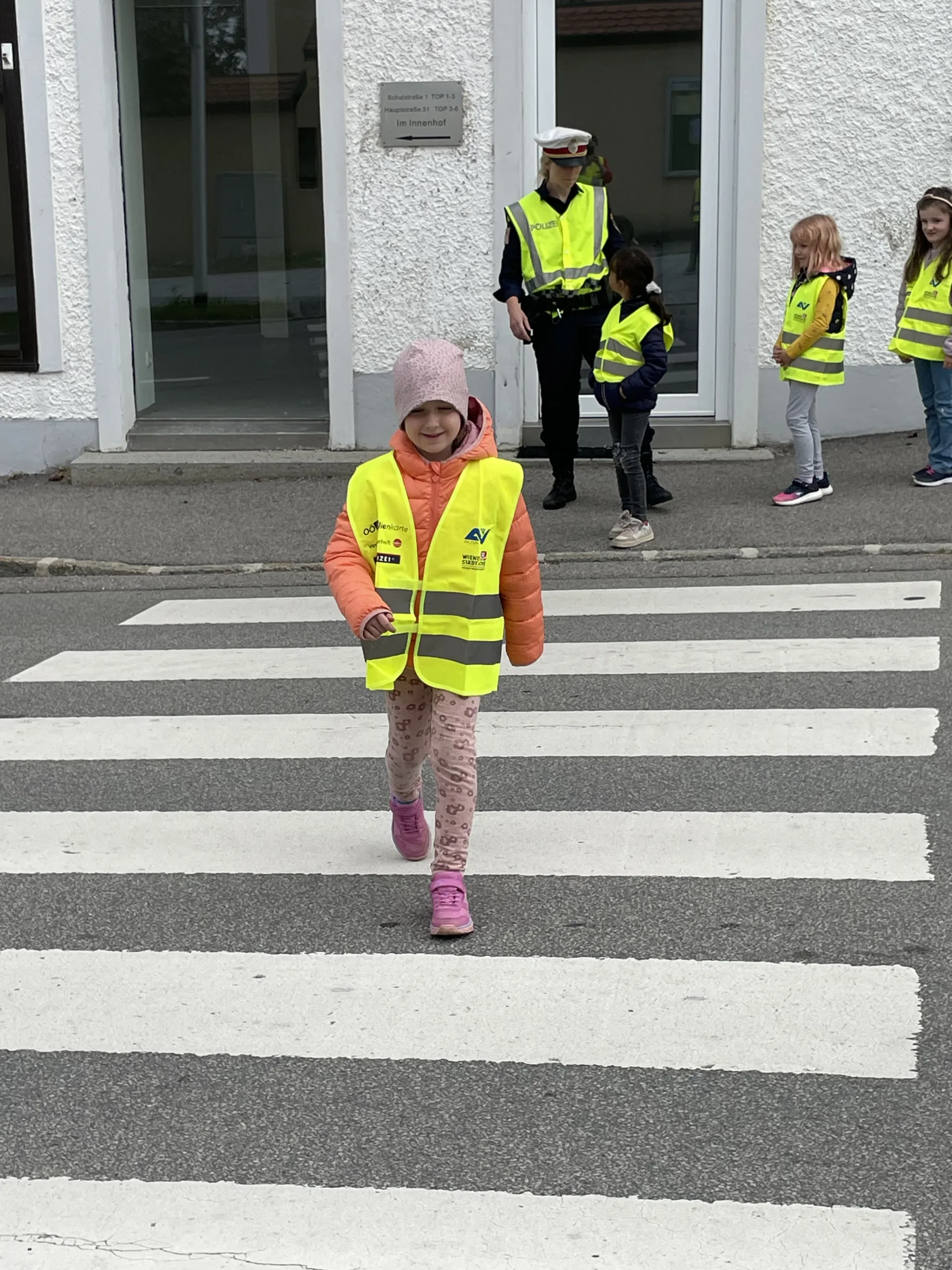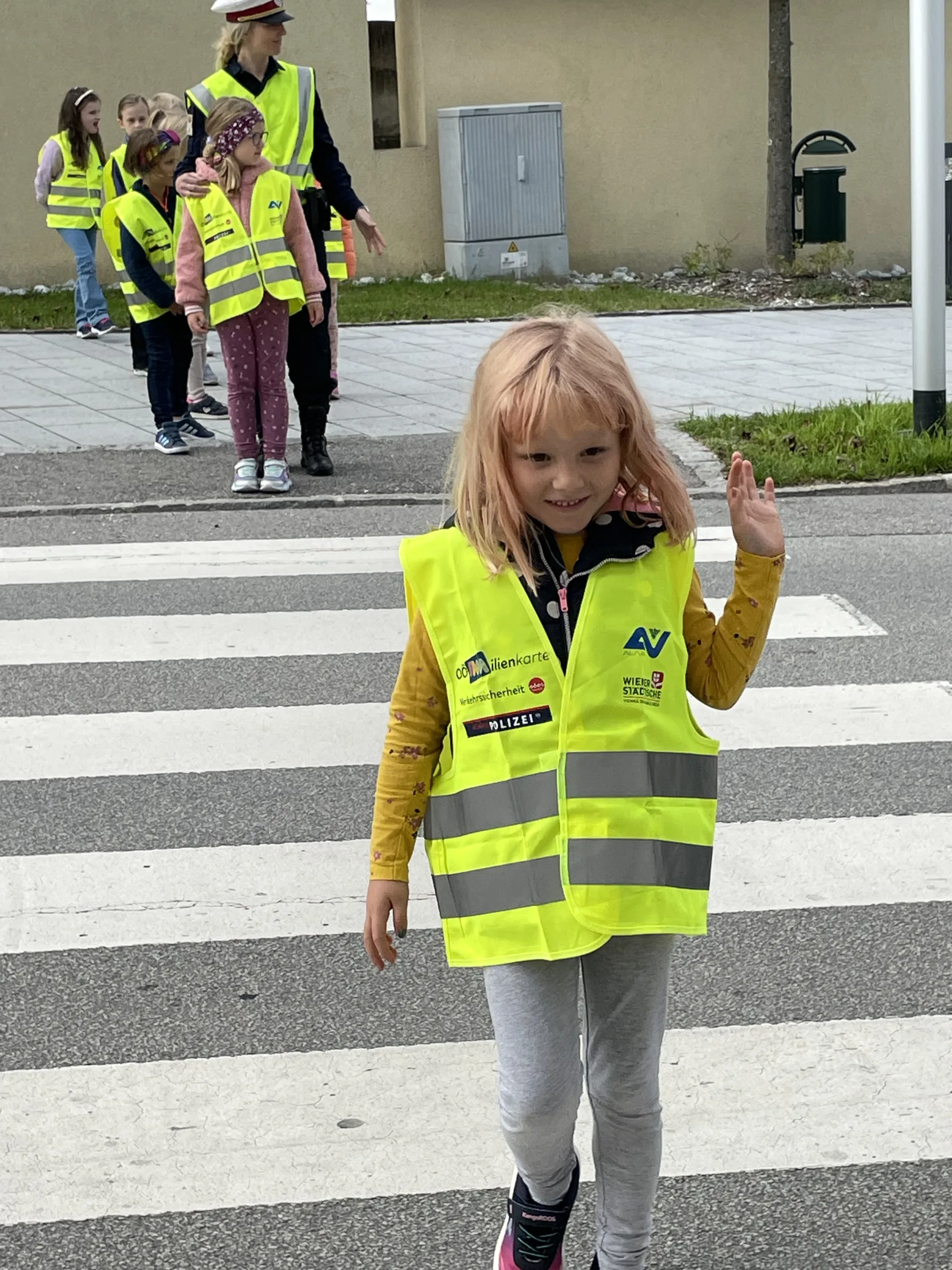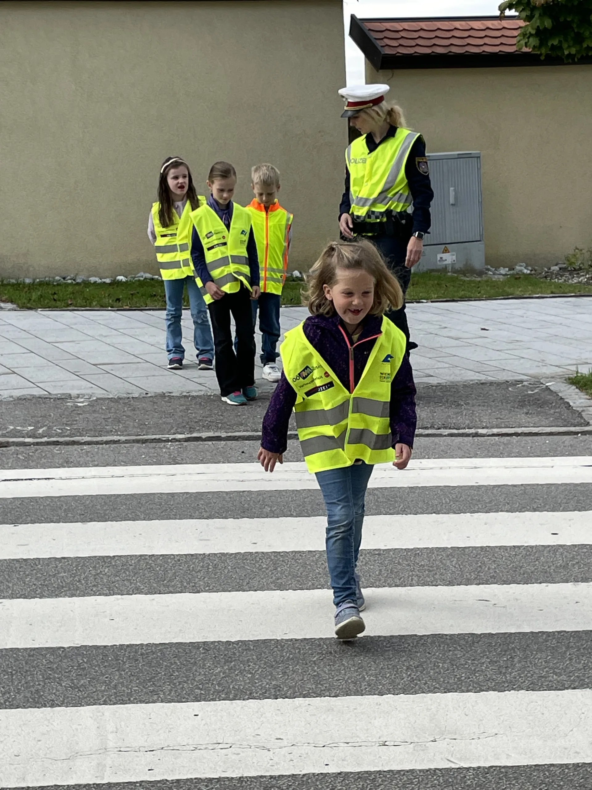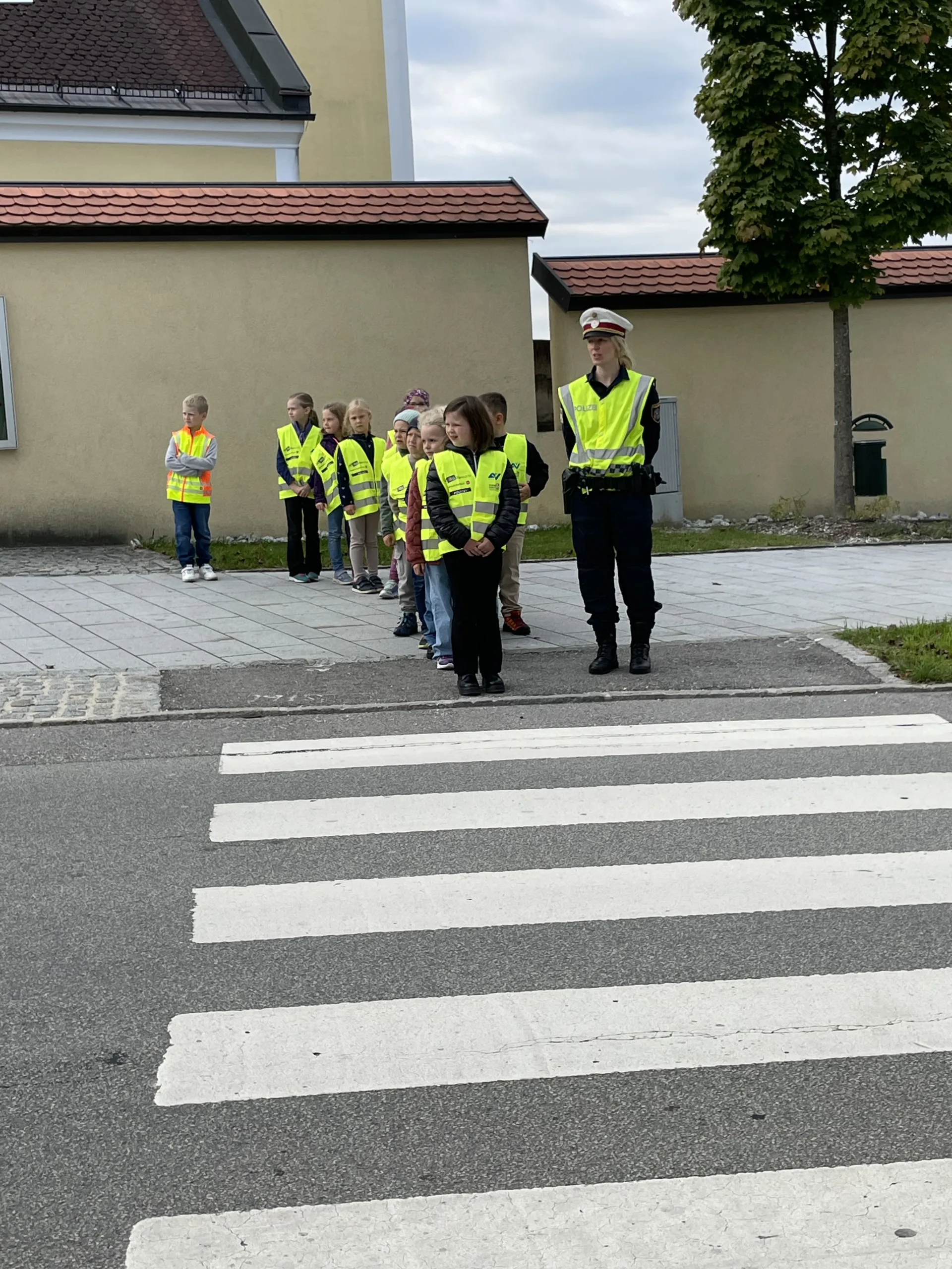 Damit wir stets sicher zur Schule kommen und die Straße richtig überqueren, hat uns in der 4. Schulwoche die Verkehrspolizistin Tanja Jungbauer besucht. Gemeinsam haben wir wichtige Regeln besprochen und natürlich auch gleich geübt.