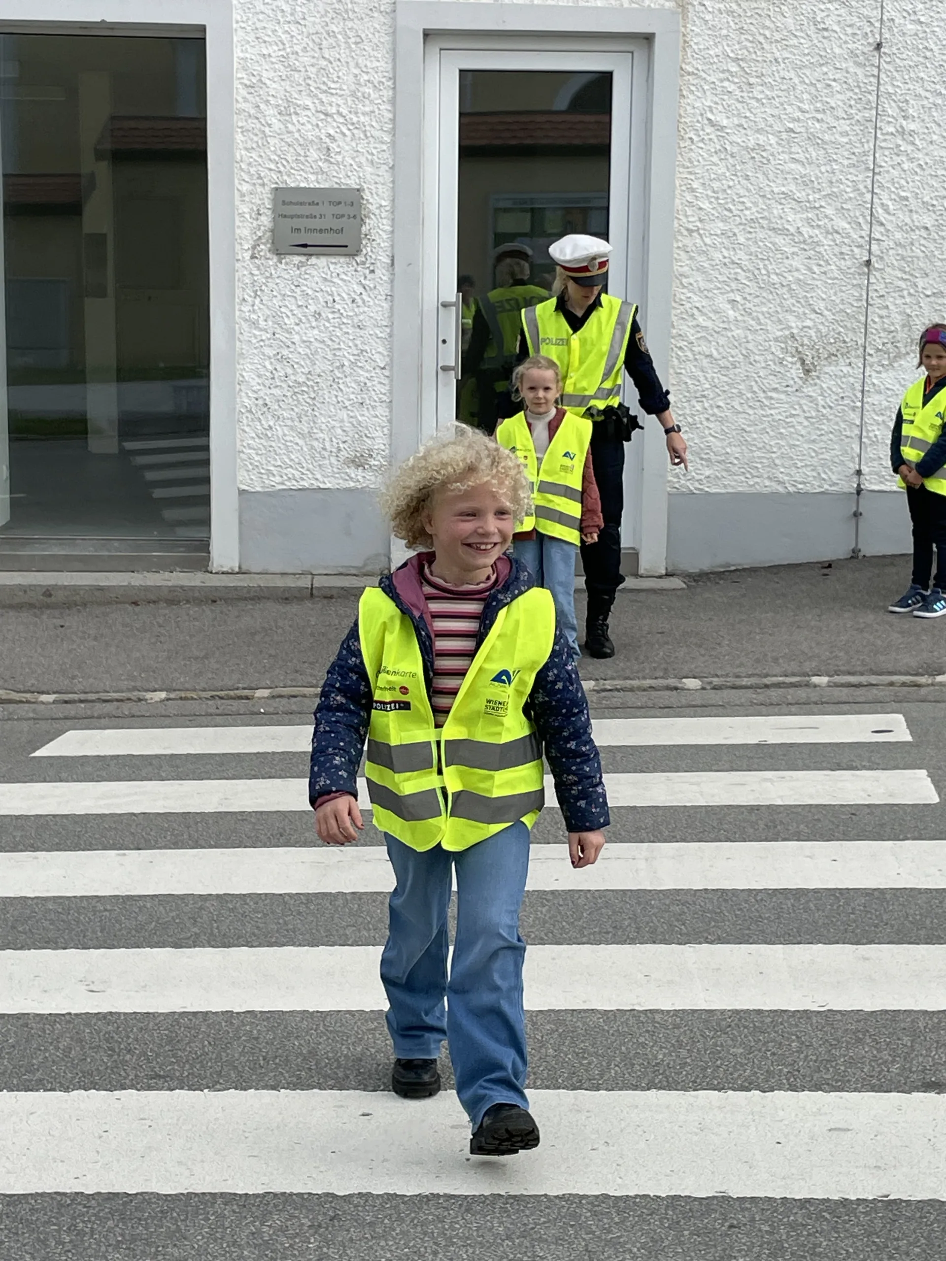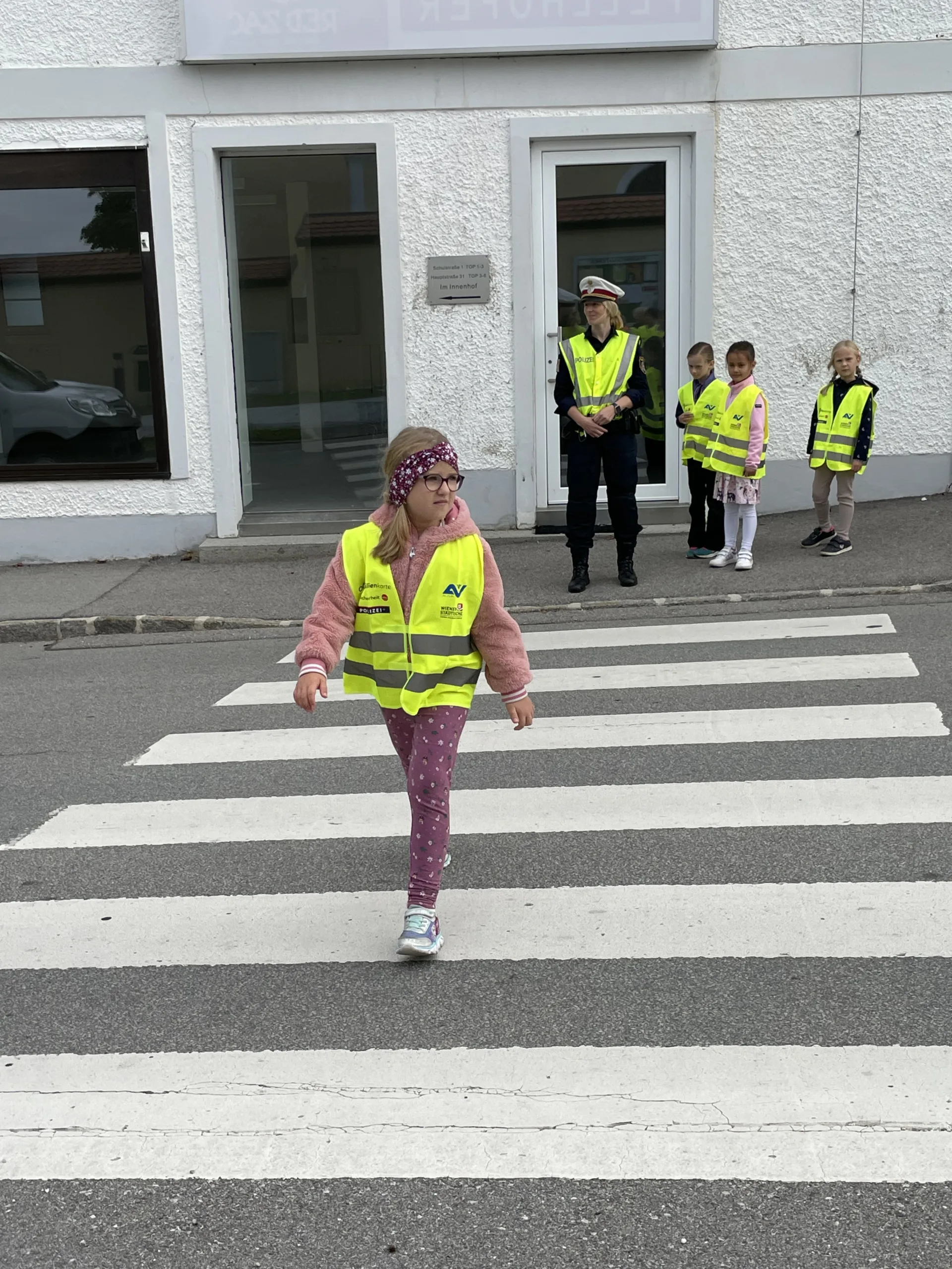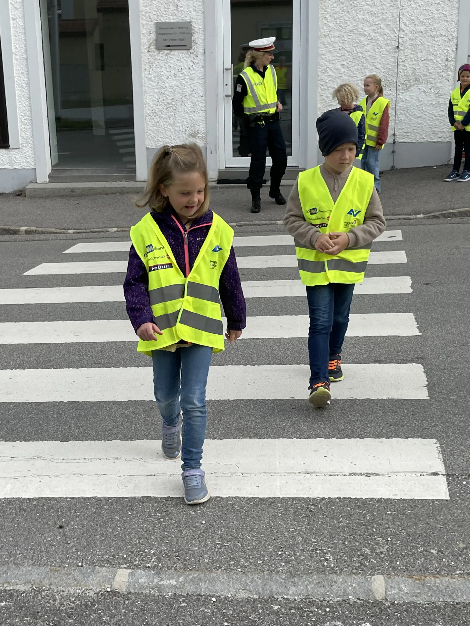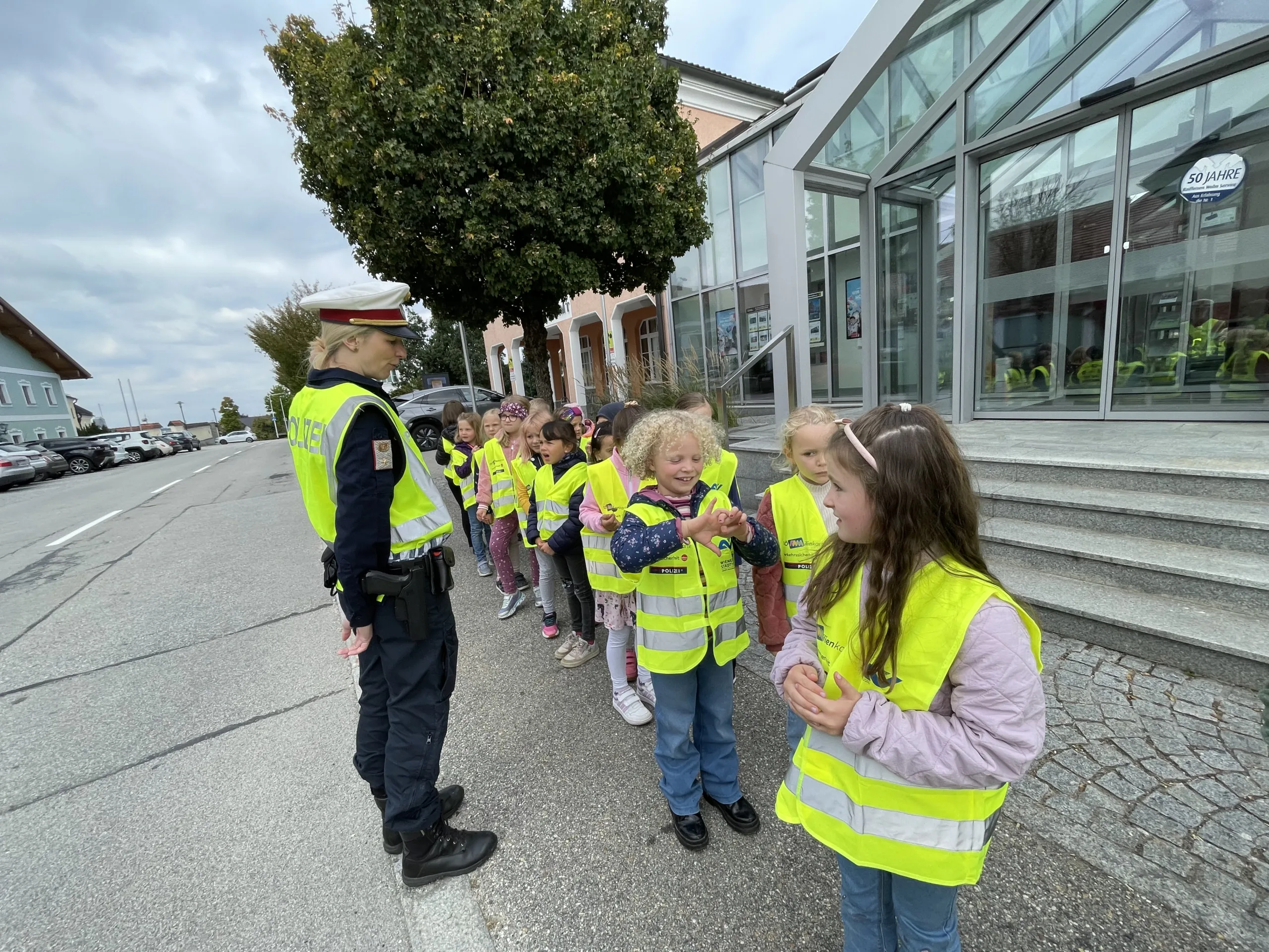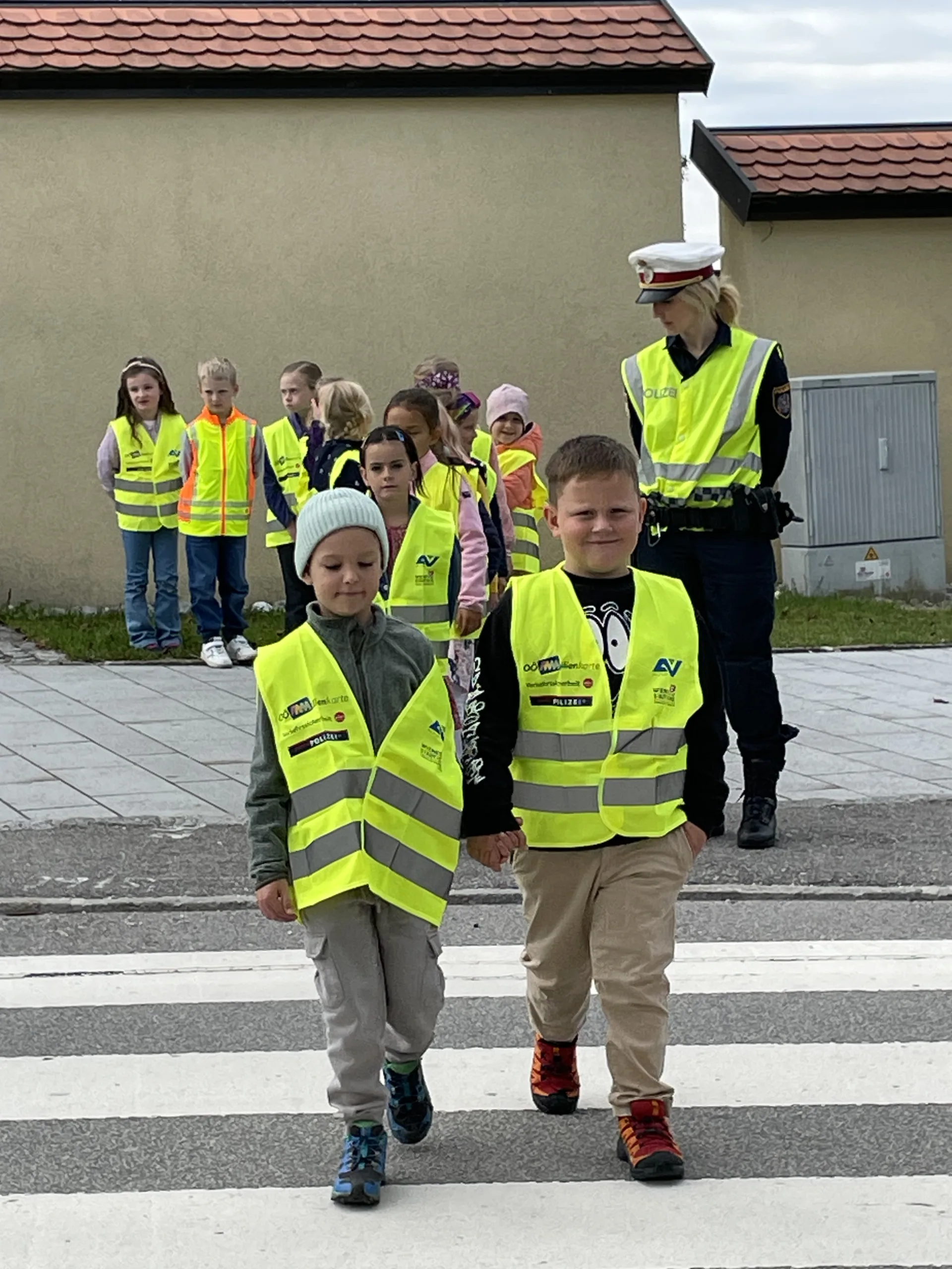 Damit wir stets sicher zur Schule kommen und die Straße richtig überqueren, hat uns in der 4. Schulwoche die Verkehrspolizistin Tanja Jungbauer besucht. Gemeinsam haben wir wichtige Regeln besprochen und natürlich auch gleich geübt.