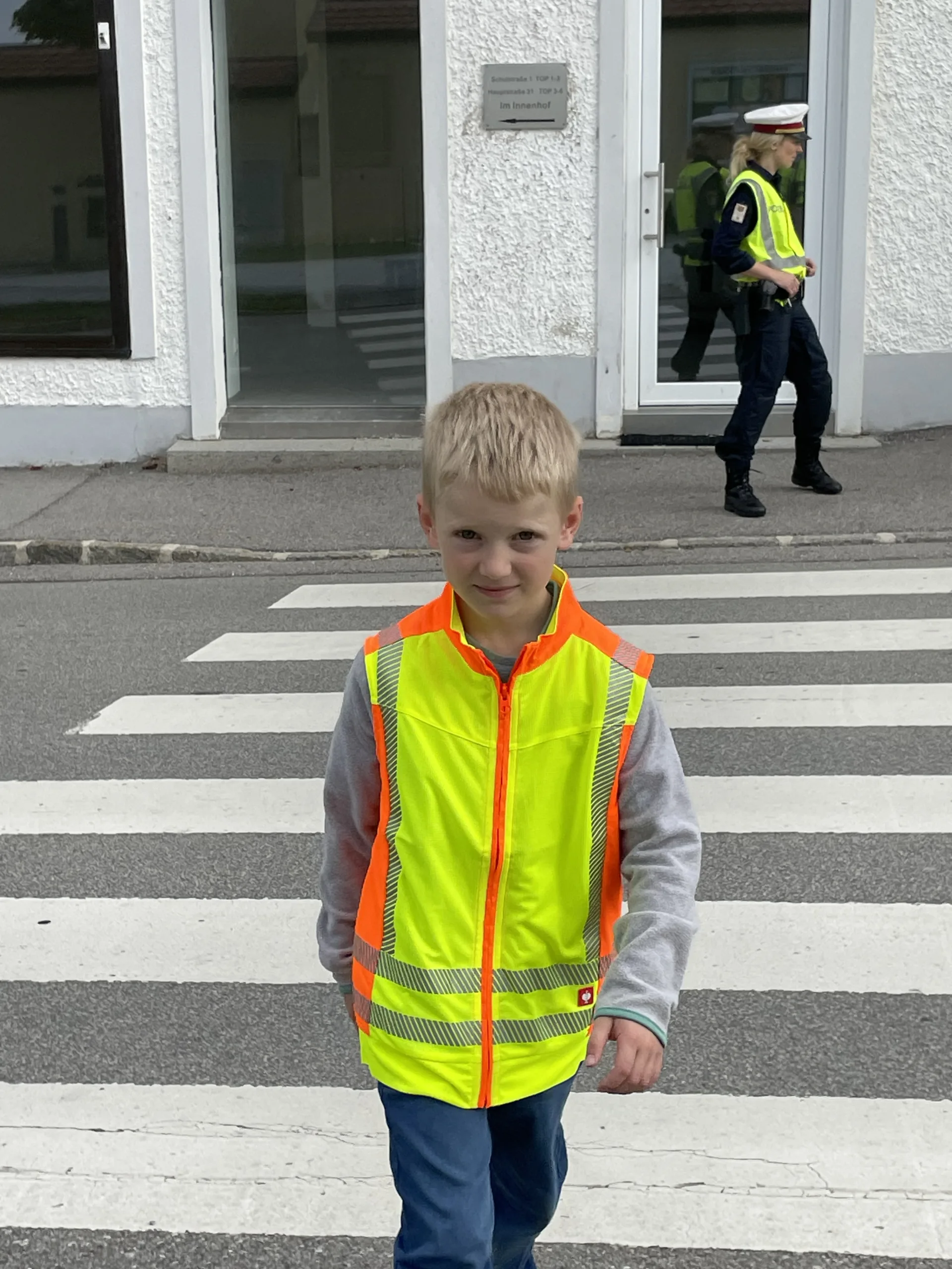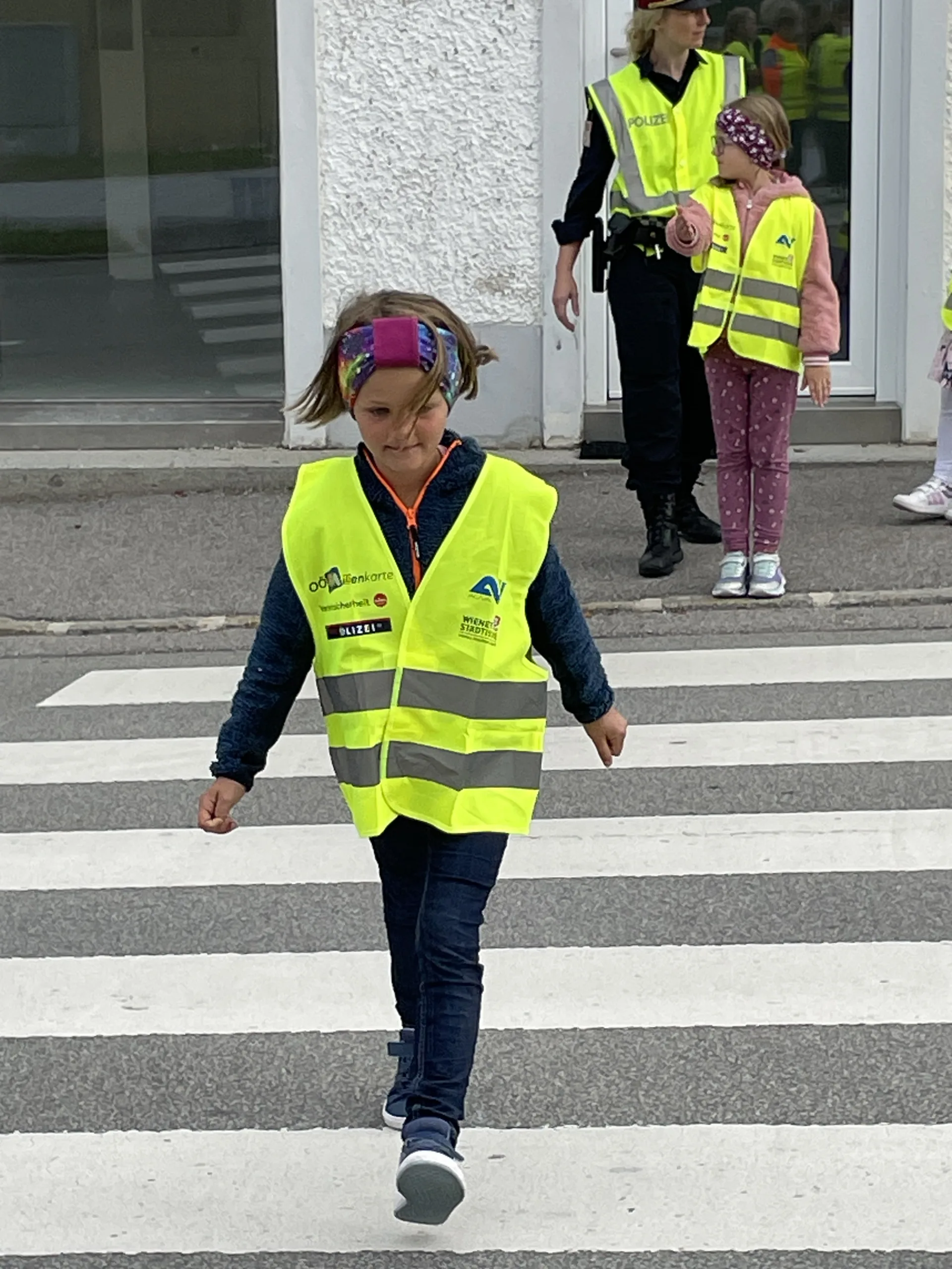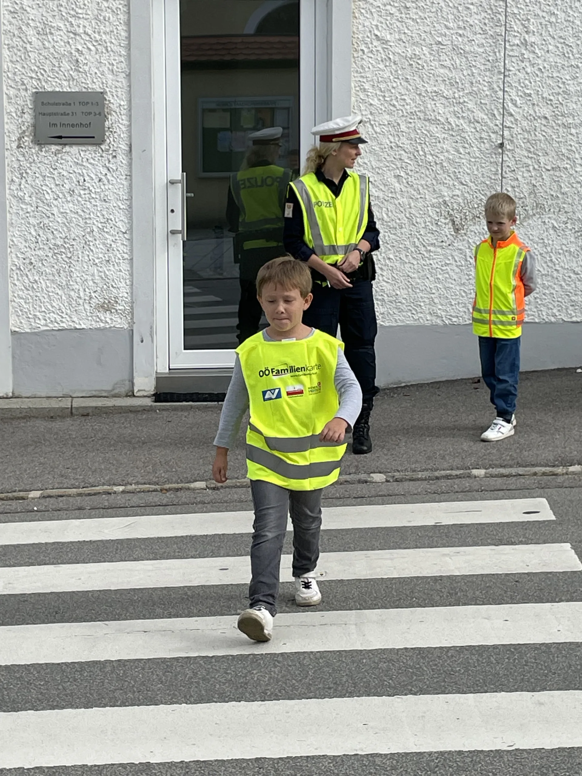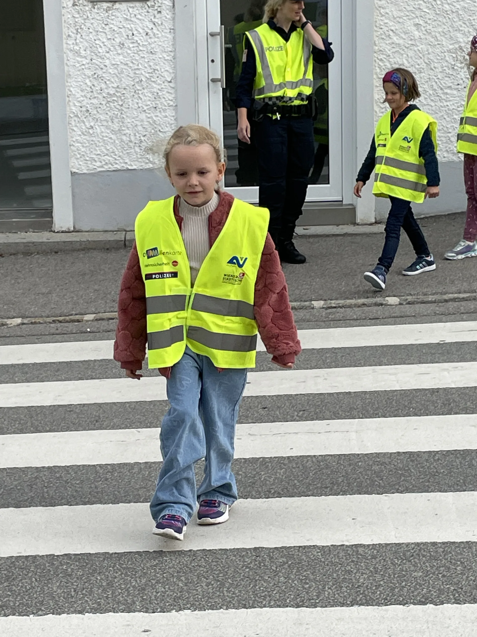 Damit wir stets sicher zur Schule kommen und die Straße richtig überqueren, hat uns in der 4. Schulwoche die Verkehrspolizistin Tanja Jungbauer besucht. Gemeinsam haben wir wichtige Regeln besprochen und natürlich auch gleich geübt.